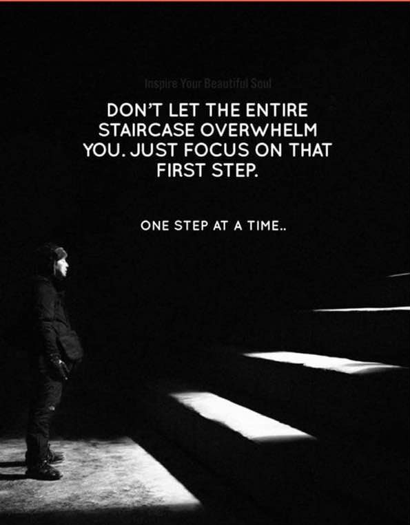 Recently, one of my Facebook friends shared an inspirational photo and saying that really connected with me. I’m focusing on every single platform step that I need to do and overwhelming myself to the point where I become catatonic. While I have no answers for platforming, I think my path forward will be taking one step at a time. I will also not compare my staircase to other’s staircases — that will only end in failure.